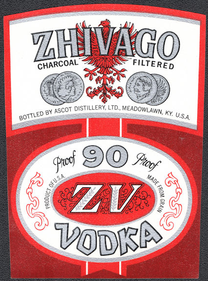 Scarce Zhivago Brand Brand Vodka Label Meadowlawn Ky