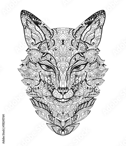 Zen Art Fox Zentangle Animal Head For The Adult Antistress Coloring Book On White Background Vector Illustration Hand Drawn Zendoodle Coloring Page T Shirt Print Buy This Stock Vector And Explore Similar