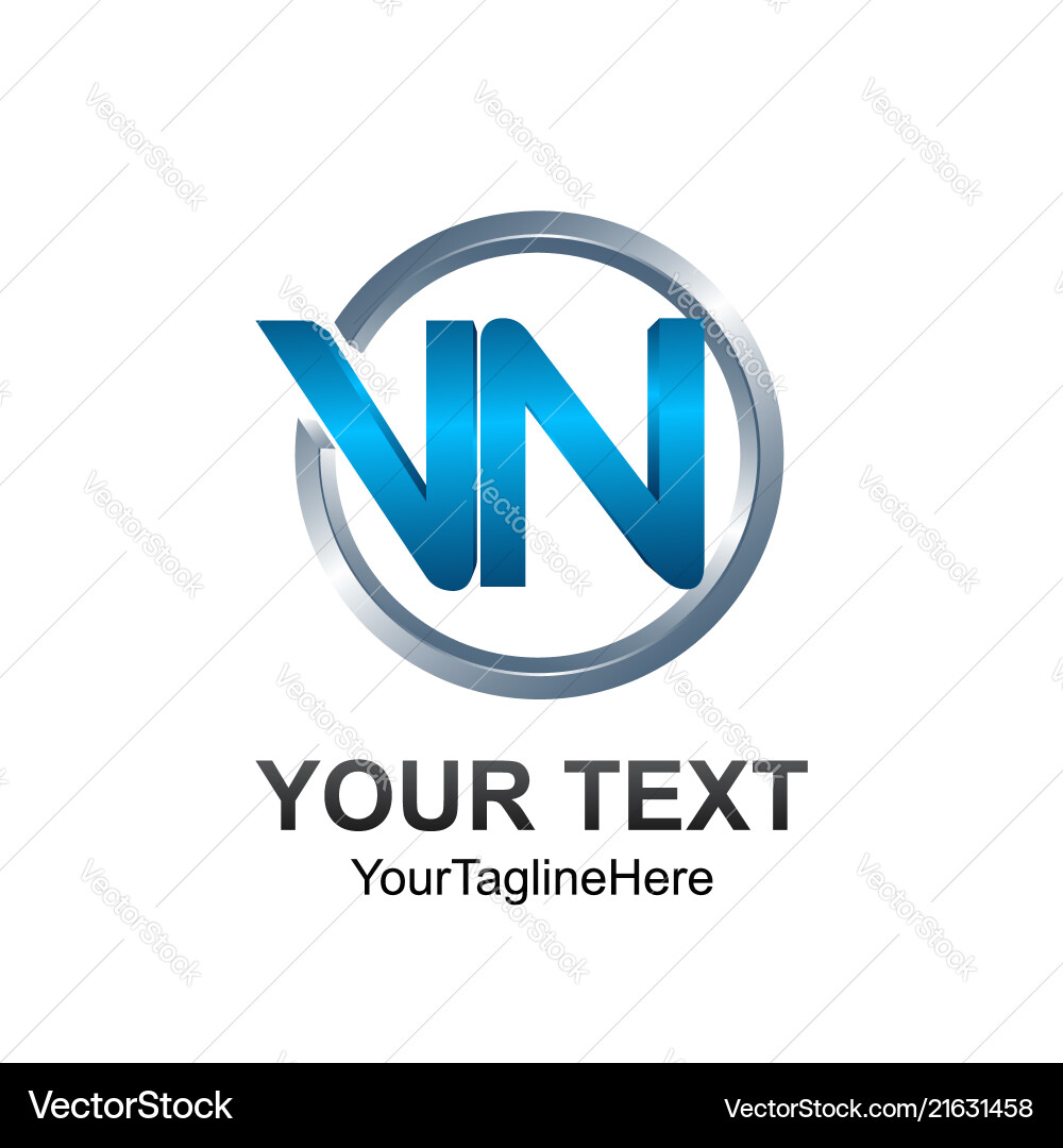 3d Circle Letter Vn Initial Alphabet Logo Design Vector Image
