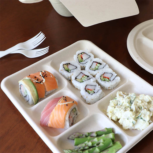 Stalkmarket T009 Compostable 5 Section Sugar Cane Lunch Trays Sleeve Of 50 Biodegradable Products Tray Styrofoam