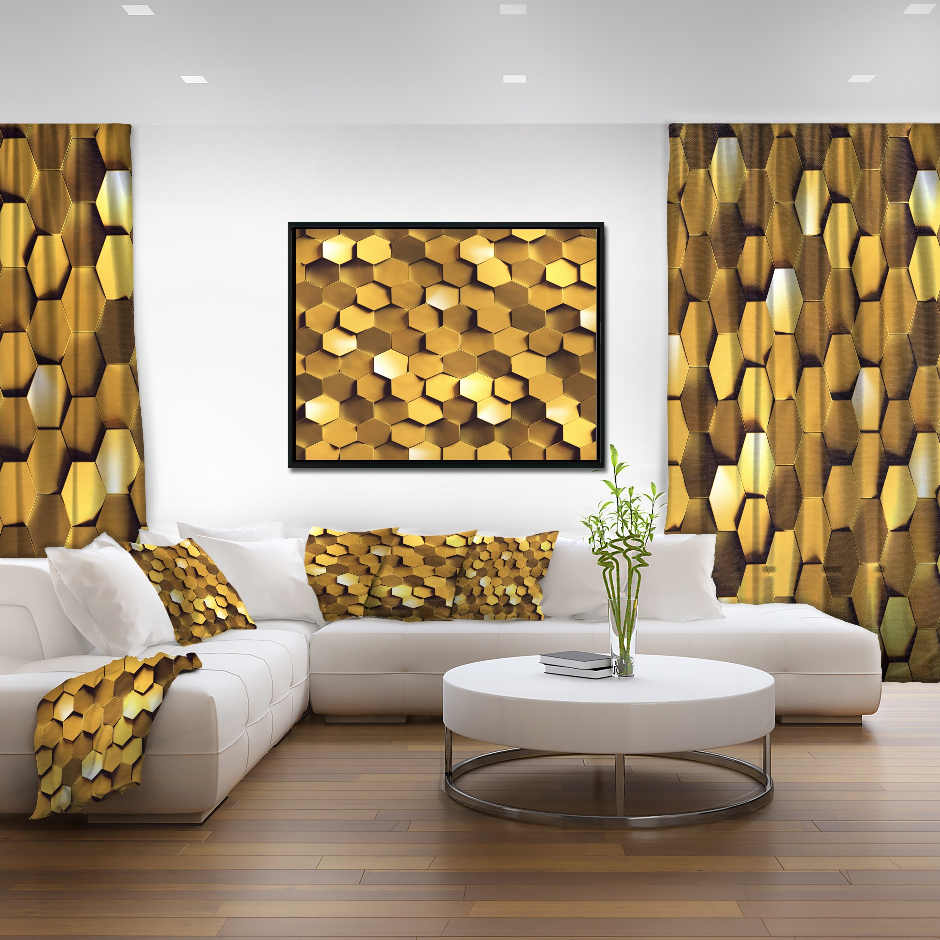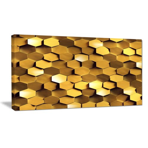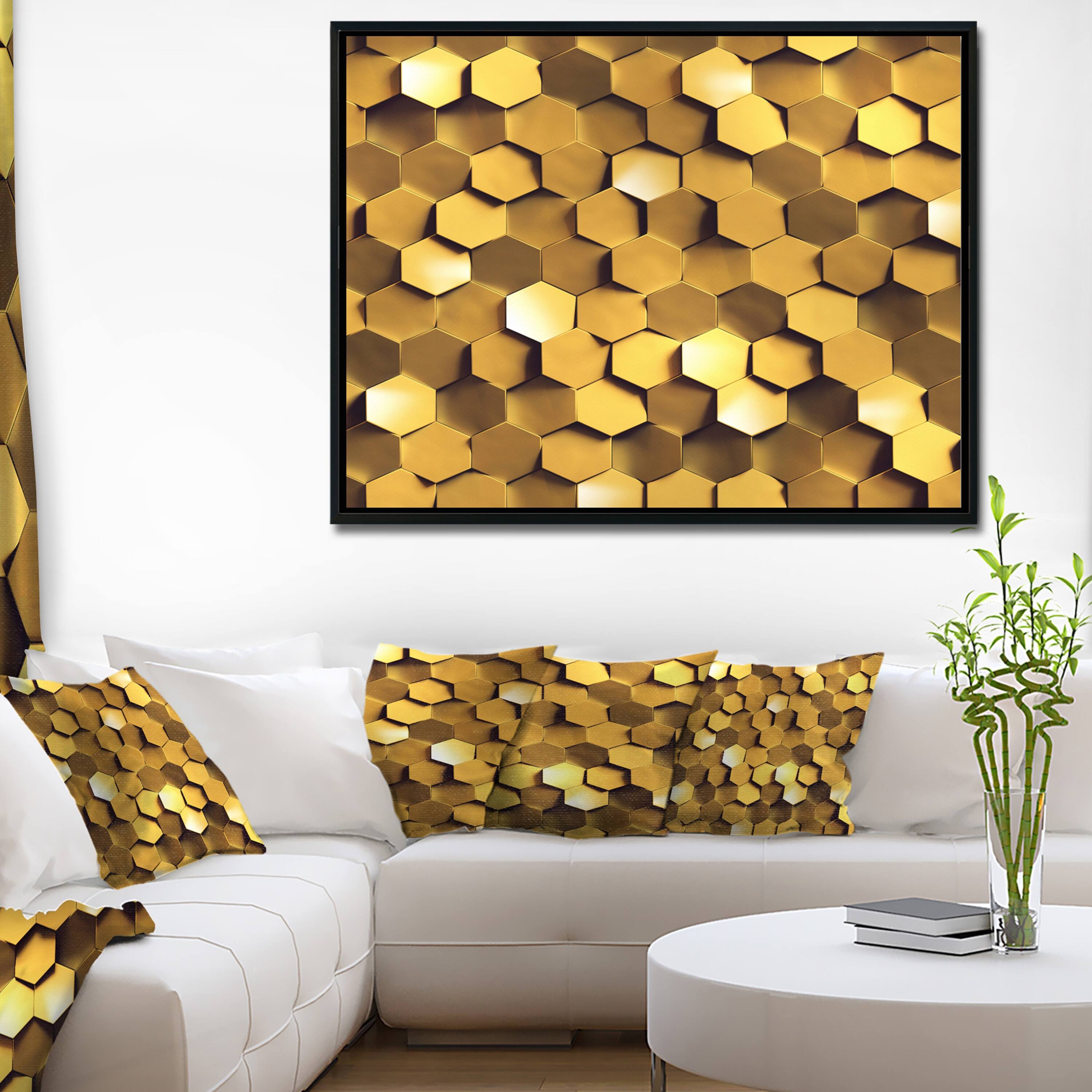 Designart Golden Honeycomb Wall Texture Abstract Framed Canvas Art Print Overstock