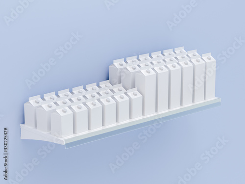 Grocery Retail Shelf With Tetrapack Products And Shelf Talker Isolated On Blue Background Side View Design Template For Mock Up 3d Rendering Image For Display Product Object In Supermarket Buy This