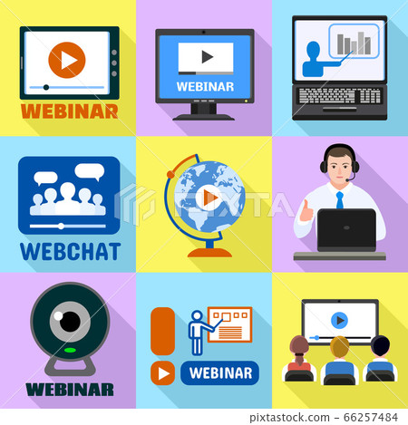 Set Of Webinar Icons Flat Vector Illustration Royalty Free Cliparts Vectors And Stock Illustration Image