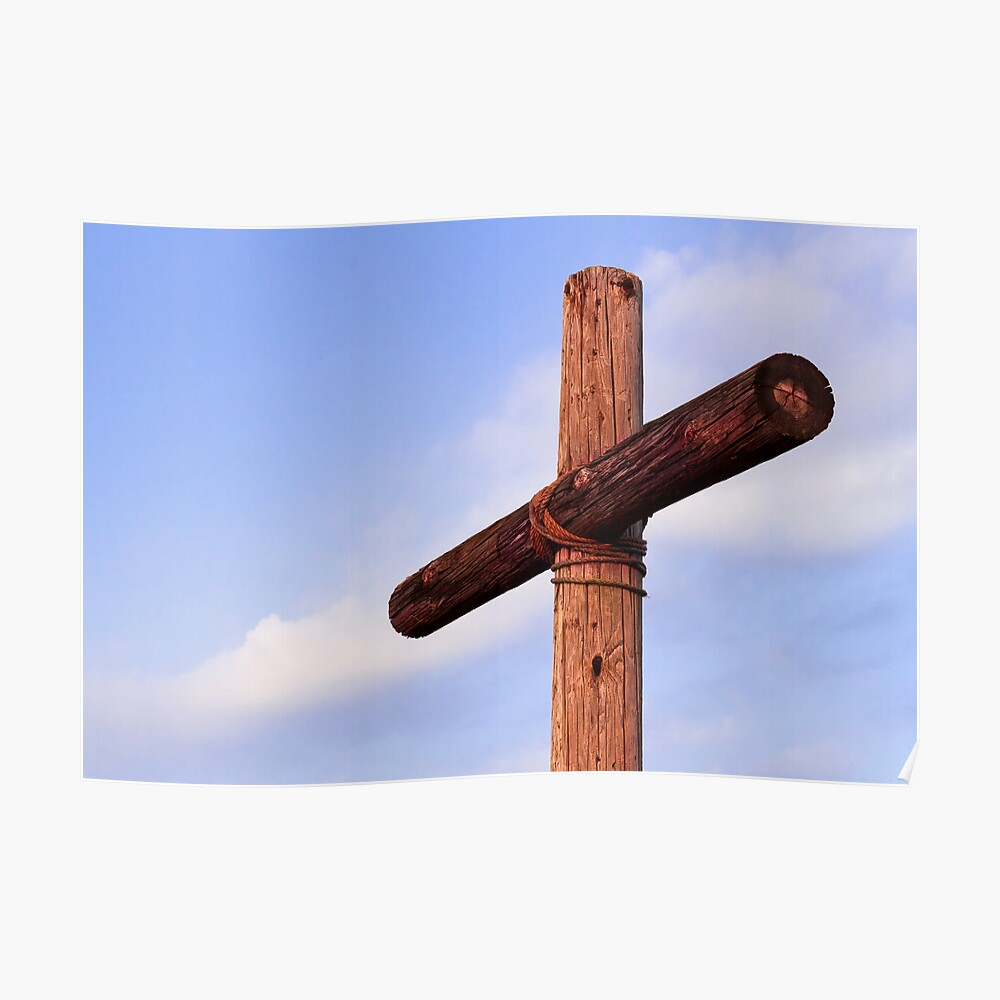 Free Art Print Of Three Wooden Crosses On Hill Three Rugged Wooden Crosses Stand On A Hill With A Blue Sky Behind Freeart Fa