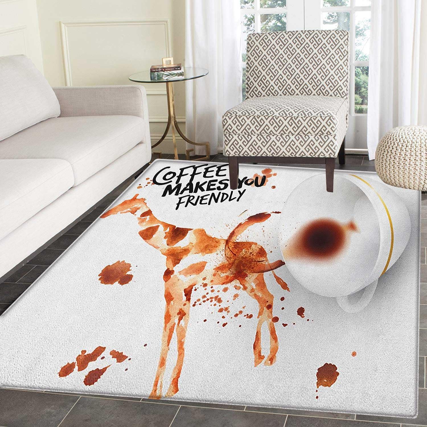 Amazon Com Coffee Art Area Rug Carpet Be Outgoing And Sociable Inspiration Hot Drink Friendly Giraffe Figure Living Dining Room Bedroom Hallway Office Carpet 3 X4 Brown Orange Black Kitchen Dining