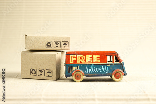 Free Delivery Van Vintage Toy Truck With Cardboard Boxes Shipping Concept Buy This Stock Photo And Explore Similar Images At Adobe Stock Adobe Stock