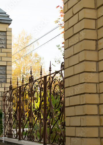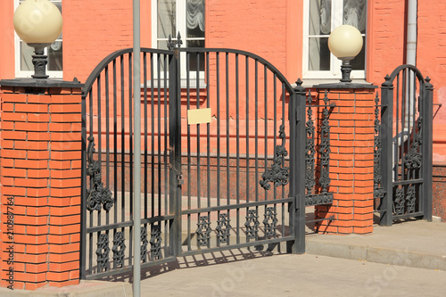 Artistic Forging Wrought Iron Fence And Red Brick Columns With A Lantern Buy This Stock Photo And Explore Similar Images At Adobe Stock Adobe Stock