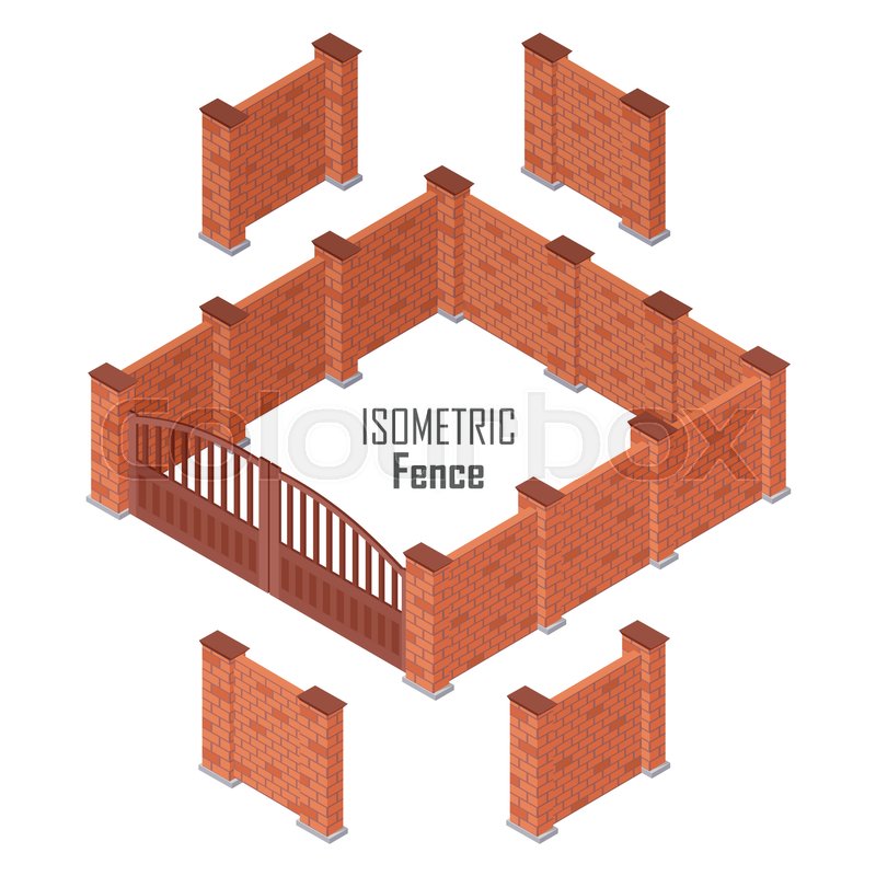 Iron Fence With Brick Columns Isolated Stock Vector Colourbox