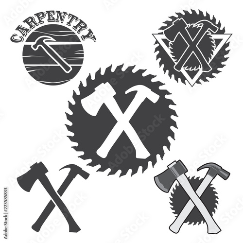 Carpentry Labels Set Logo Design Creative Carpentry Woodworking Logo