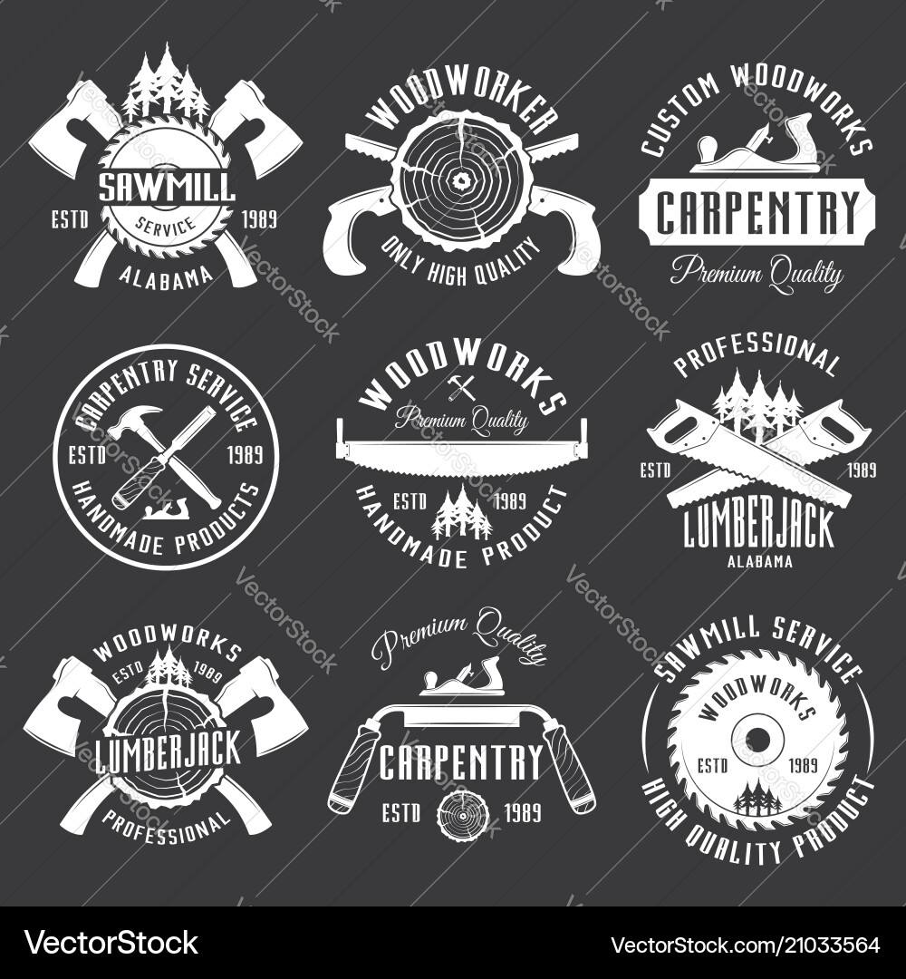 Woodworking Badges Logos And Labels For Any Use Vector Image