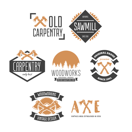 Set Of Carpentry Logos Badges And Labels Original Design Template Woodworking Elements Vector Illustration Buy This Stock Vector And Explore Similar Vectors At Adobe Stock Adobe Stock