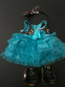 Build A Bear Turquoise Blue Ruffle Dress Multi Color Sequins Teddy Shoes Band Ebay