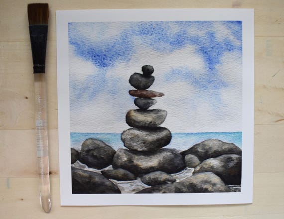 Beach Pebbles Watercolor Beach Art Beach Rocks Ocean Etsy