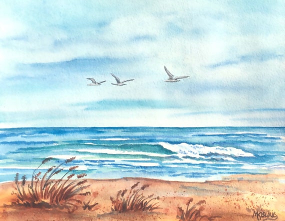 Seascape Watercolor Ocean Watercolor Ocean Painting Etsy