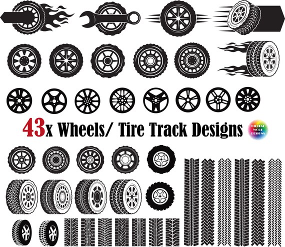 43x Wheel Svg Tire Track Silhouette Wheel Logowheel Etsy