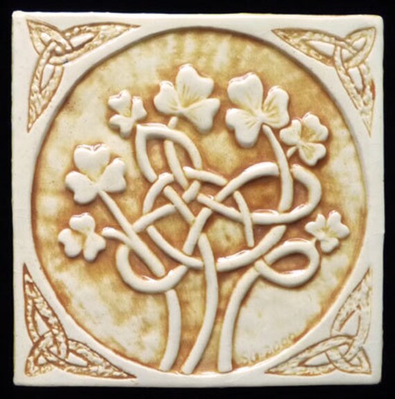 Decorative Relief Carved Ceramic Celtic Shamrock Tile Etsy