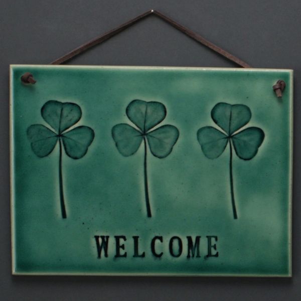 Shamrock Hanging Tile Shamrock Wall Hanging Ceramic Art Etsy In Ceramic Art Tile Art Wall Hanging