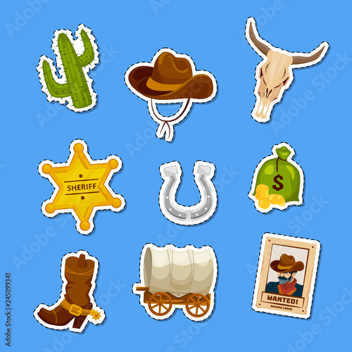 Vector Cartoon Wild West Elements Stickers Set Illustration Wild West Star Sheriff Badge And Different Elements Buy This Stock Vector And Explore Similar Vectors At Adobe Stock Adobe Stock