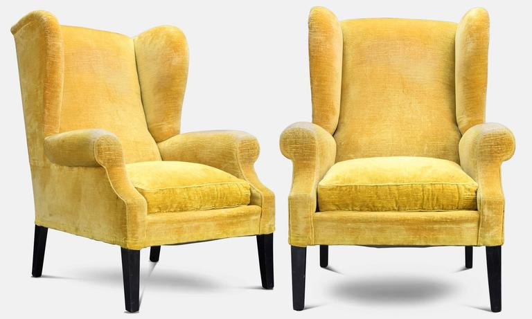 Pair Of Yellow Velvet Wingback Armchairs Circa 1950 At 1stdibs