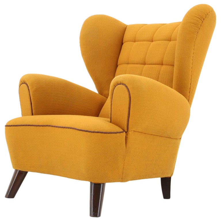 Vintage Rare Design Yellow Big Wing Chair 1950s At 1stdibs