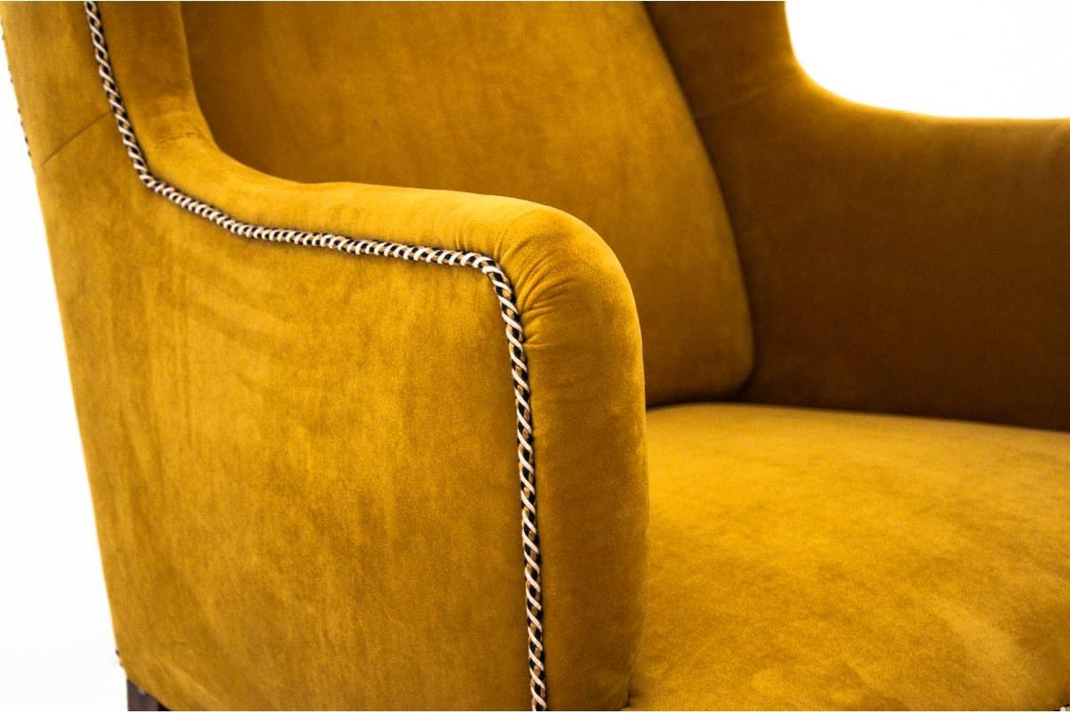 Rare Vintage Mid Century Wing Chair In Gold Yellow Velours 1950s