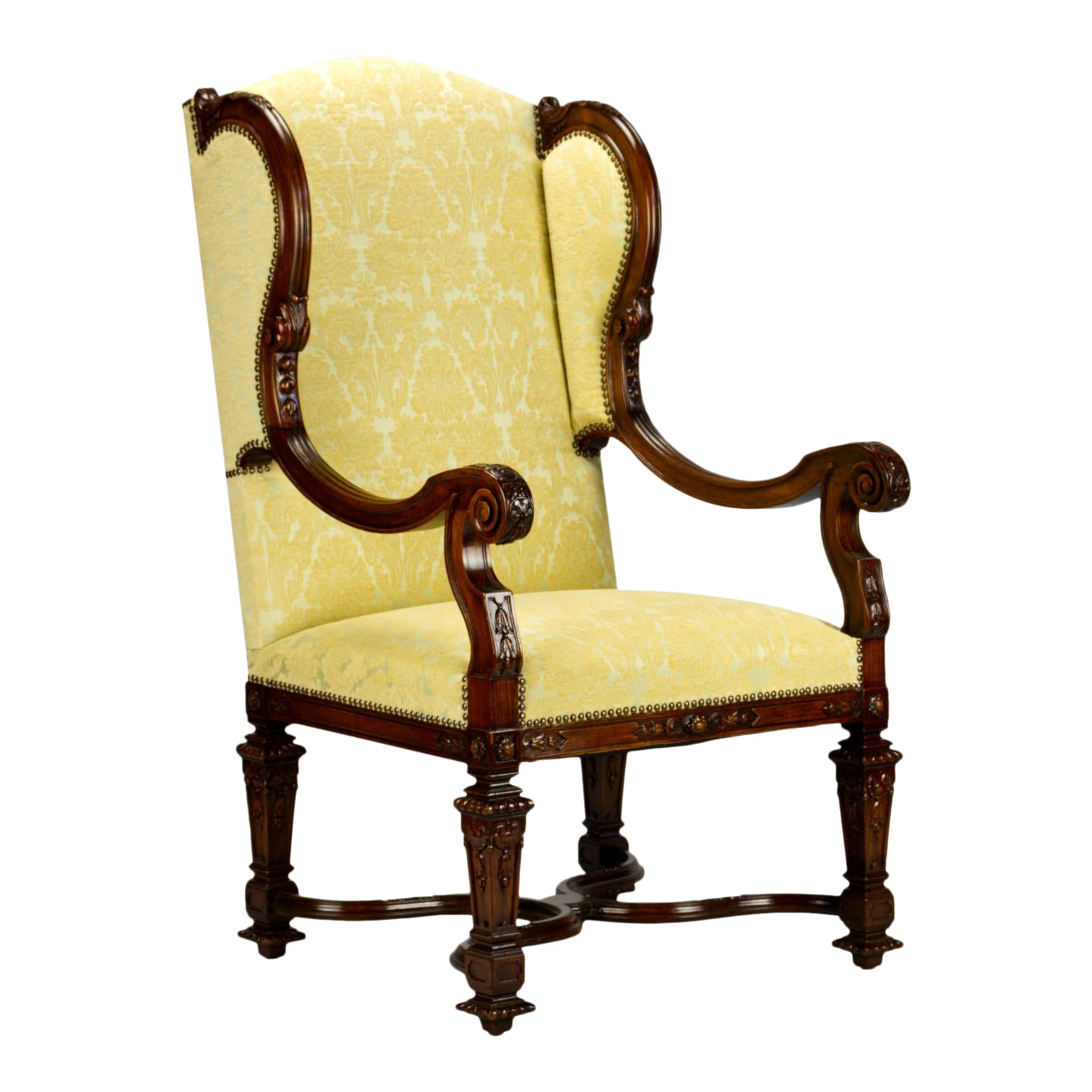 Restored Hand Carved French Louis Xiv Walnut Wingback Armchair 1800s Chairish