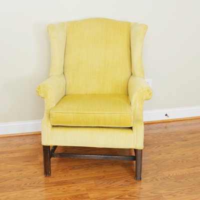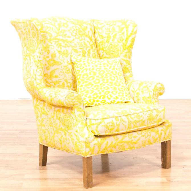 Ethan Allen Yellow Upholstered Wing Chair Ebth
