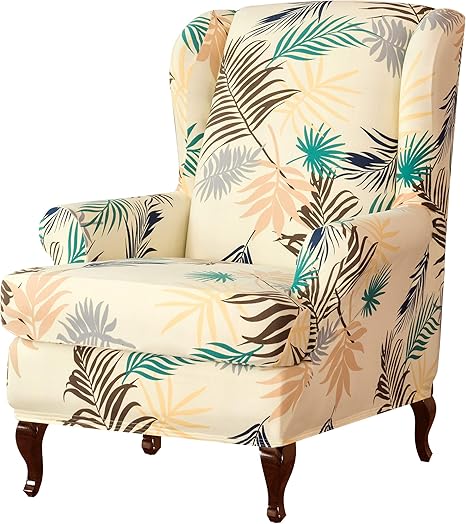 Amazon Com Subrtex Wing Chair Slipcovers Stretchy Wingback Armchair Covers Detachable Spandex Covers Leaves Printed Furniture Protector Yellow Furniture Decor
