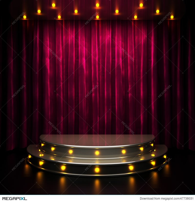Red Curtain Stage With Lights Illustration Megapixl