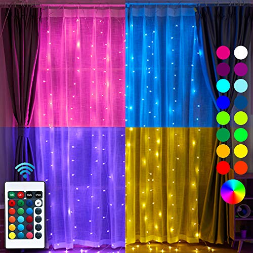 Amazon Com Curtain Lights 8 Modes Fairy Lights String With Remote Controller Ip64 Waterproof Usb Plug In Twinkle Lights For Weddings Parties Backdrop Wall Decorations 300 Led 9 8x9 8ft Multicolor Garden Outdoor