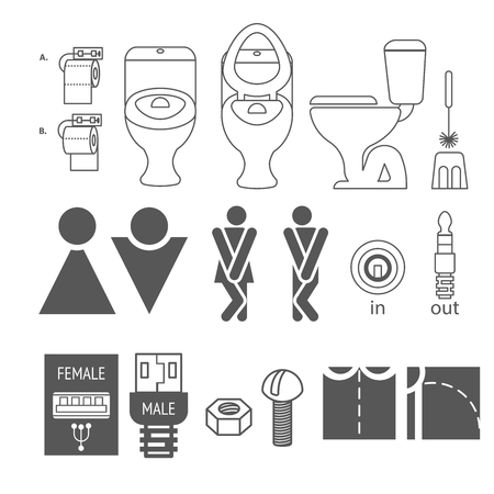 Wc Logo Illustrations Denoting Male Or Female Toilet Various Funny Options Closets And Wc Accessories Stylized Figures Of Men And Women Royalty Free Vector Graphics