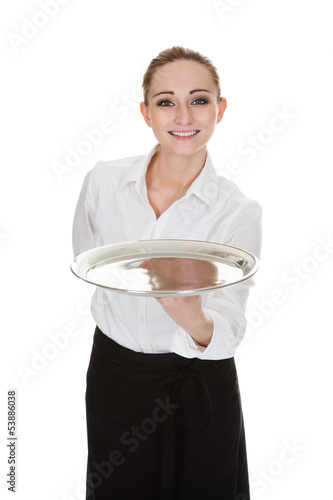 Waitress Holding An Empty Tray Stock Photo C Ljsphotography