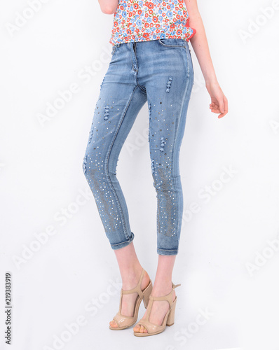 Front View Women Legs In Pearlescent Sequins Jeans With High Hell Shoes Buy This Stock Photo And Explore Similar Images At Adobe Stock Adobe Stock