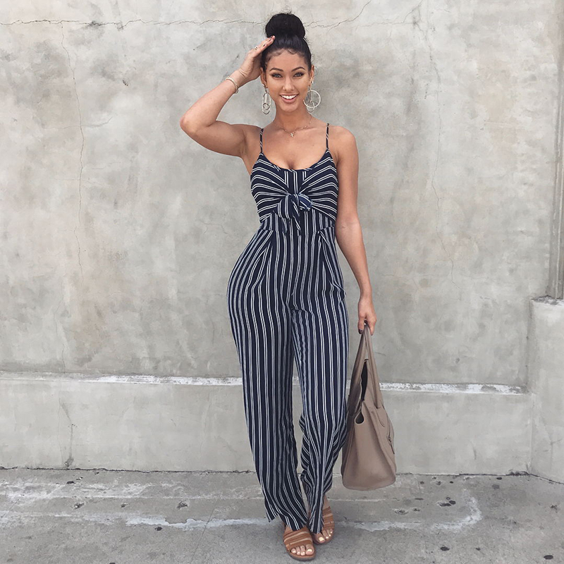 Anself Fashion Women Striped Wide Legs Jumpsuit Tie Front Spaghetti Straps Sleeveless Casual Playsuit Rompers Walmart Com Walmart Com