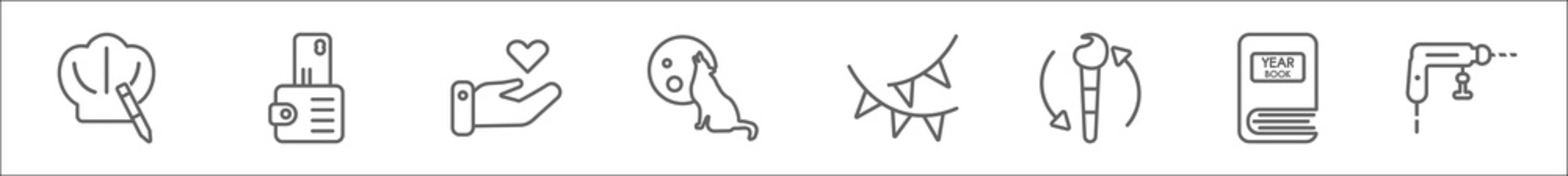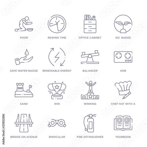 Set Of 16 Thin Linear Icons Such As Yearbook Fire Estinguisher Binocular Bridge On Avenue Perspective Chef Hat With A Pencil Winning Win From General Collection On White Background Outline Buy