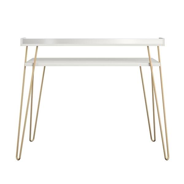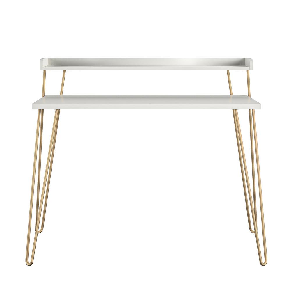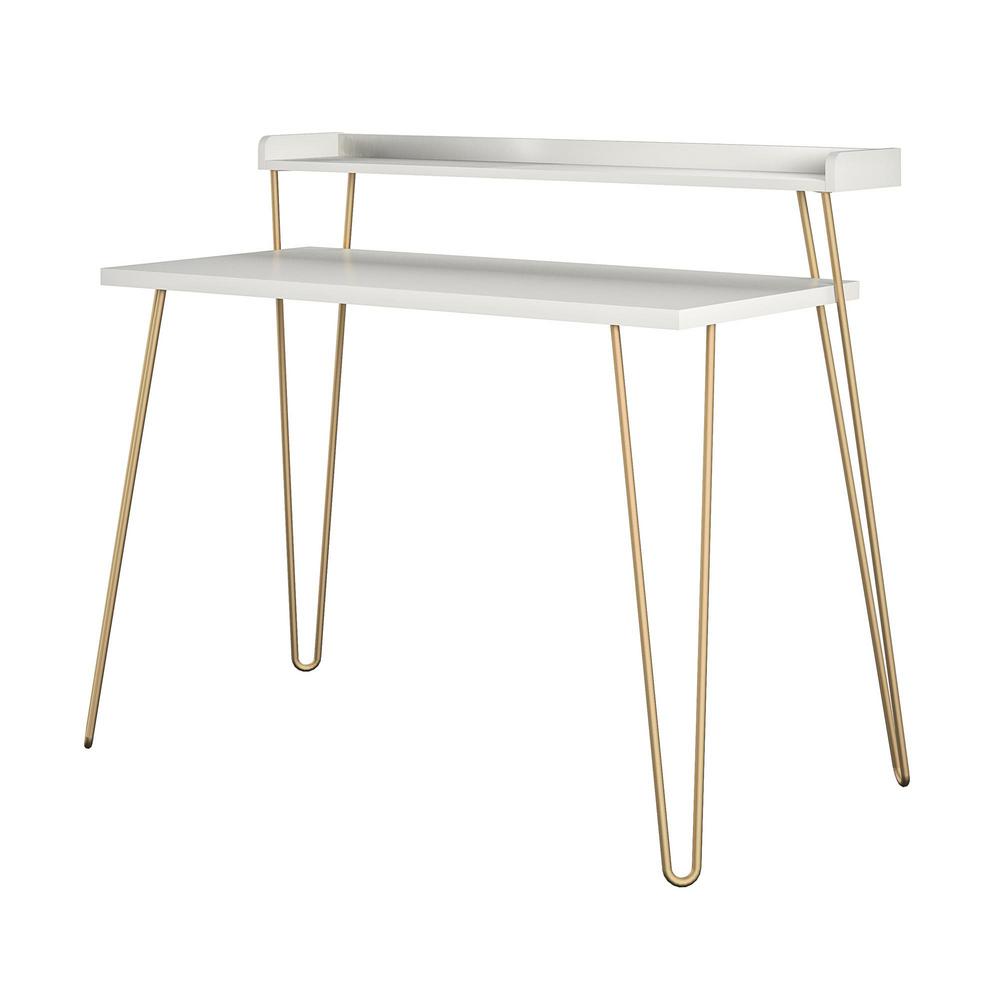 Ameriwood Home Shanewood 44 7 In Retro Desk With Riser In White With Gold Legs Hd The Home Depot