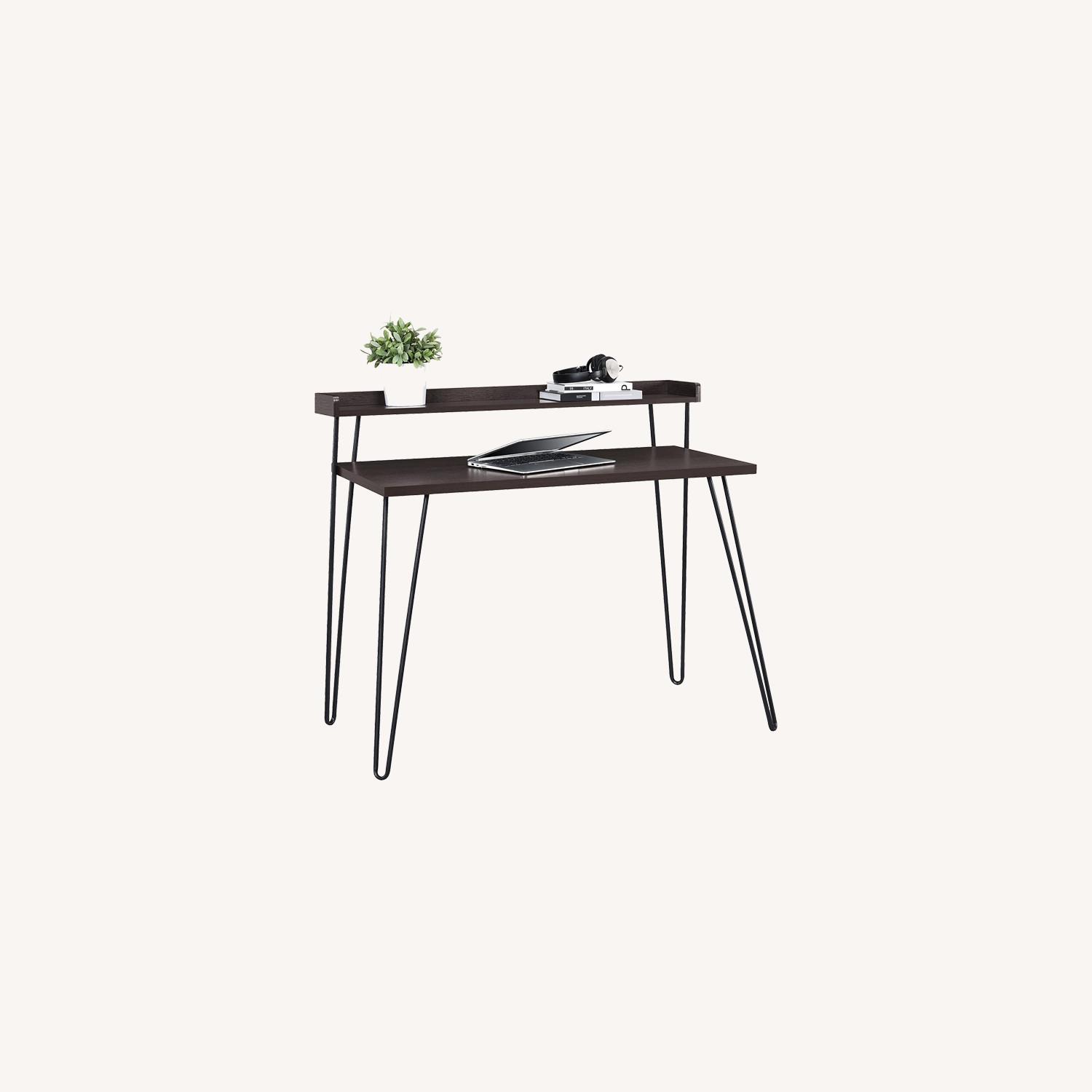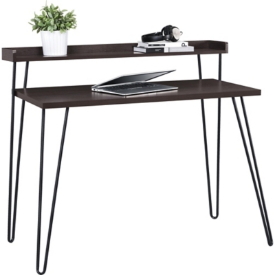 Dorel Haven Espresso Gunmetal Gray Retro Desk With Riser
