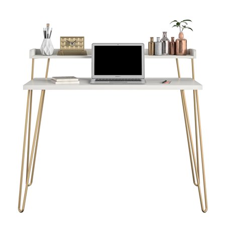 Amazon Com Ameriwood Home Haven Retro Riser Desk White With Gold Legs Furniture Decor
