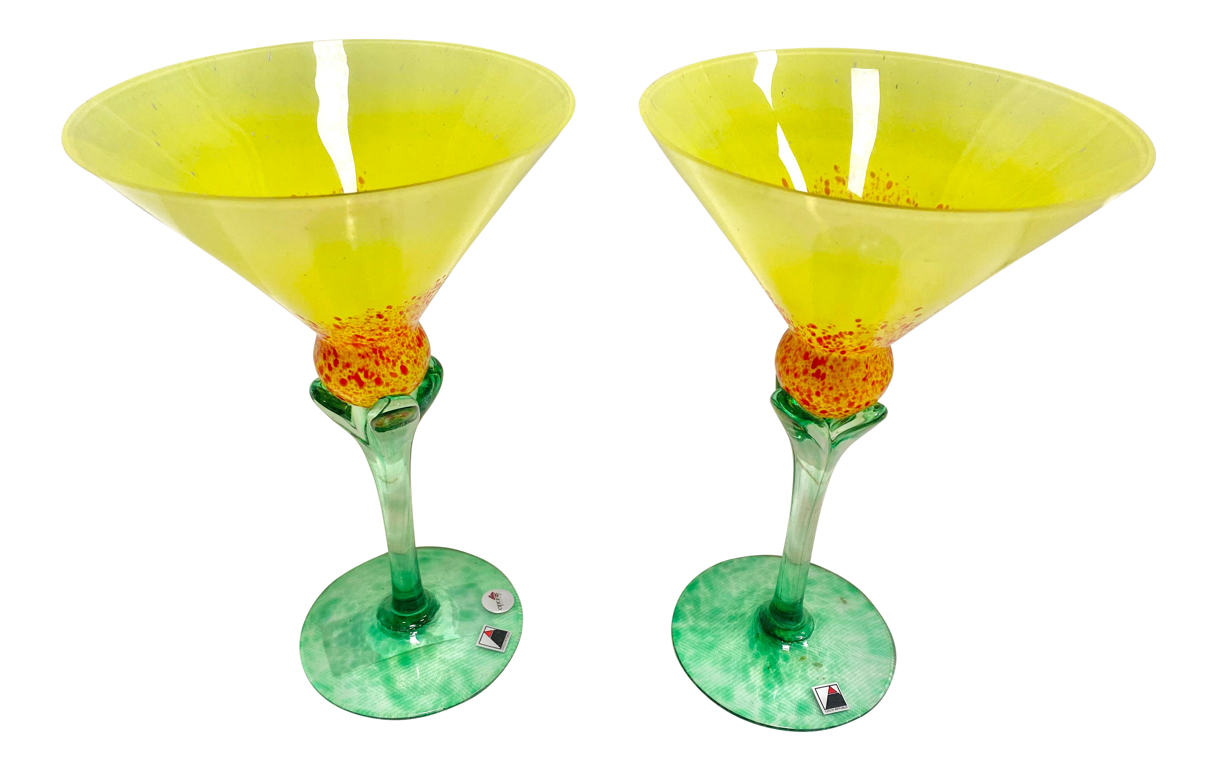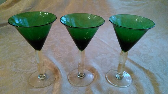 Green On Yellow Stem Martini Glasses Etsy