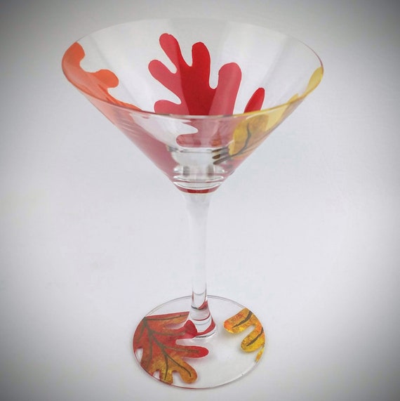Painted Fall Leaf Martini Glass Autumn Oak Leaves Fall Etsy