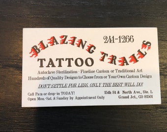Vintage Blazing Trails Tattoo Business Card Etsy Traditional Flash Tattoos Business Cards