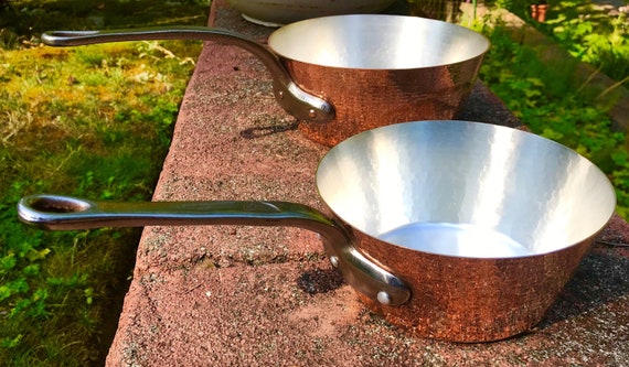 Two Solid Silver Lined French Copper Set Of Two Pots Hammered Etsy