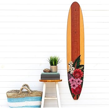 Amazon Com Wooden Surfboard Growth Chart For Boys And Girls Wood Height Chart Flowers Baby