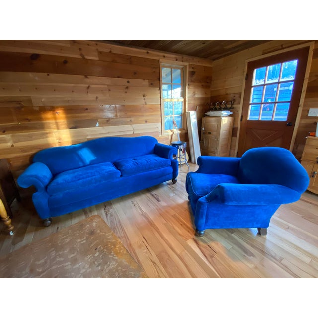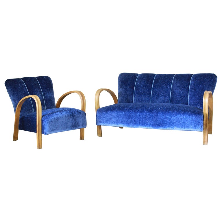 1940s Vintage Blue Velvet Sofa And Armchair In Art Deco Style For Sale At 1stdibs