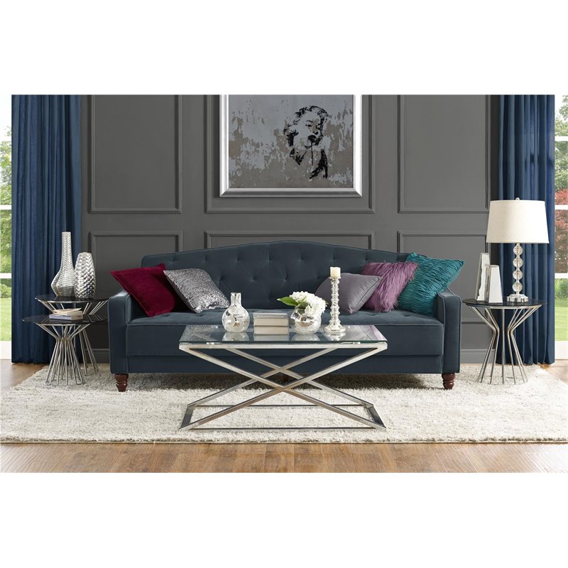 Novogratz Vintage Blue Velvet Tufted Sofa Sleeper Ii 657n The Home Depot