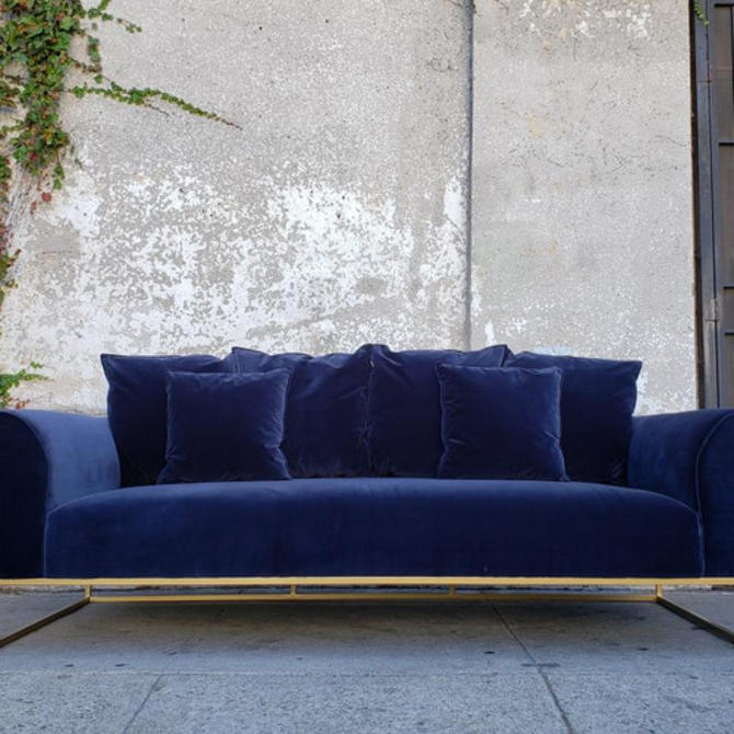 Blue Velvet Sofa W Brass Base From Sunbeam Vintage Of Highland Park Los Angeles Ca Attic