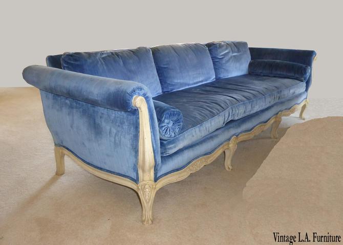 Vintage French Provincial Royal Blue Velvet Settee Sofa Long By Vintagelafurniture From Vintage La Furniture Of Santa Ana Ca Attic