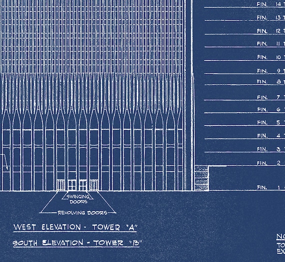 World Trade Center Blueprint Vintage Nyc Blueprints Of Etsy