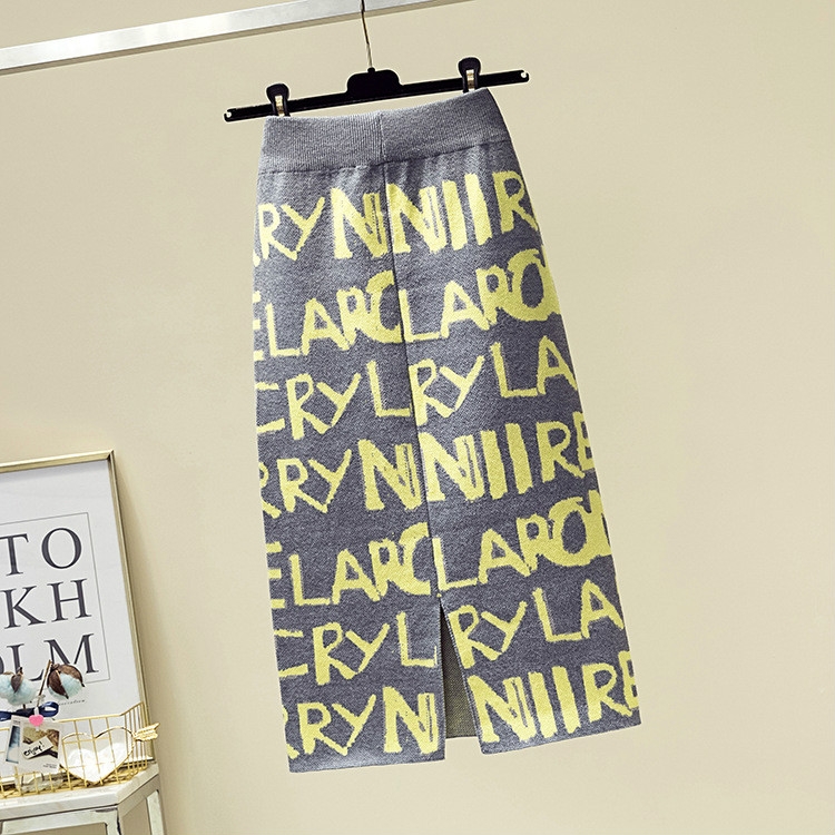 Sunsky Autumn And Winter Letter Print Bag Hip Knit Skirt Size One Size Gray Skirt Yellow Letters