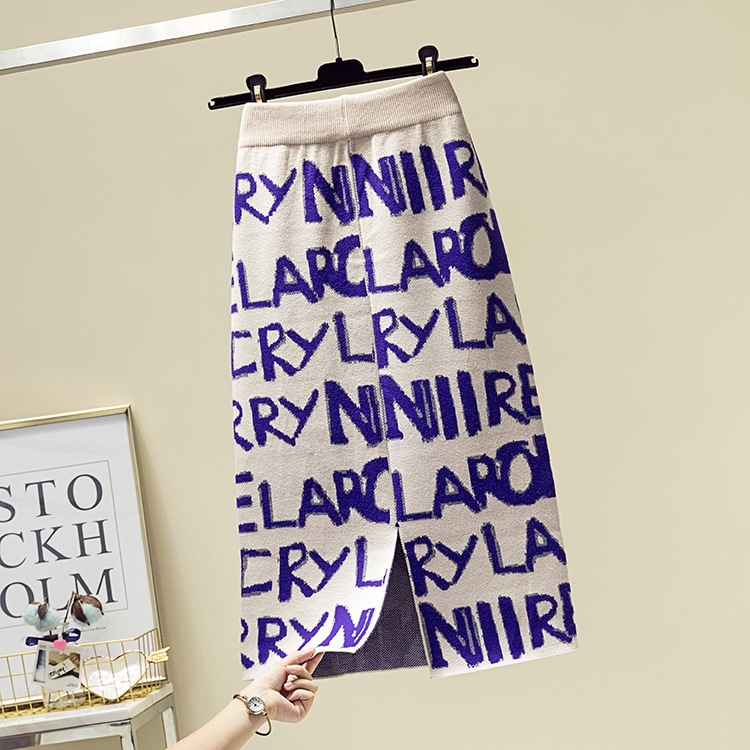 Sunsky Autumn And Winter Letter Print Bag Hip Knit Skirt Size One Size Apricot Skirt Blue Letters